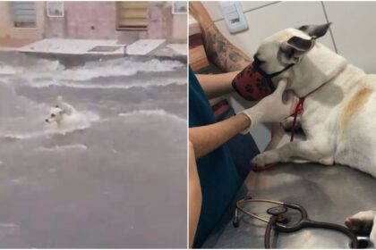 Cão arrastado por correnteza sobrevive e é resgatado por voluntários O cão…